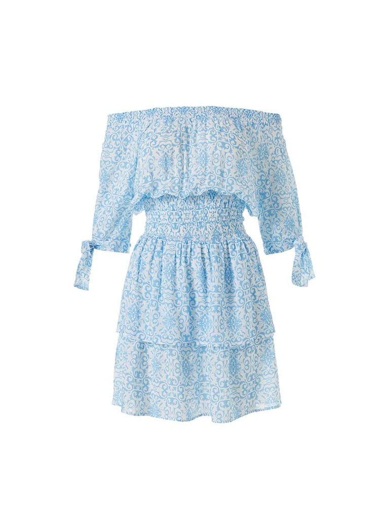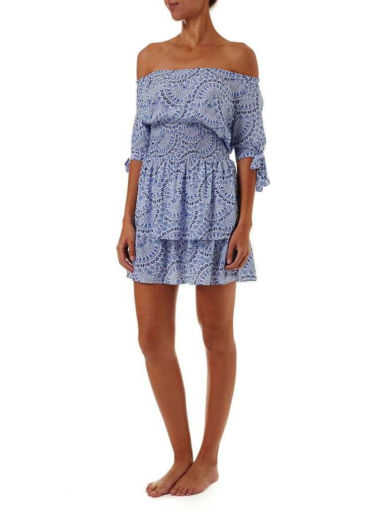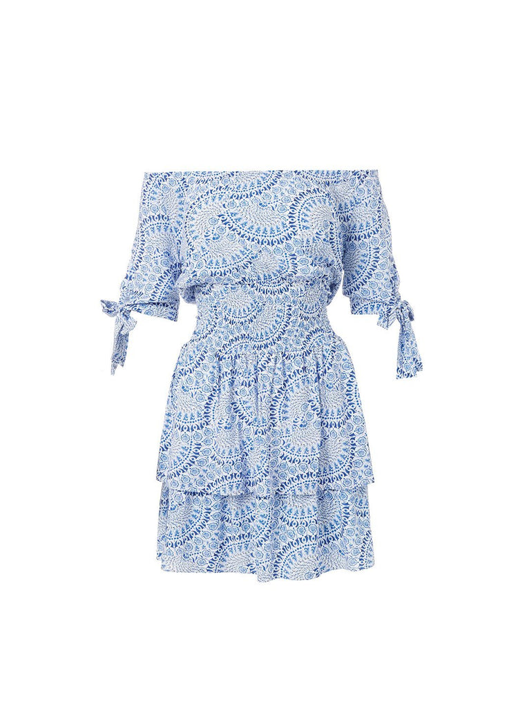 • Camilla Blue Fan Off The Shoulder Short Dress $92.00 $230.00
