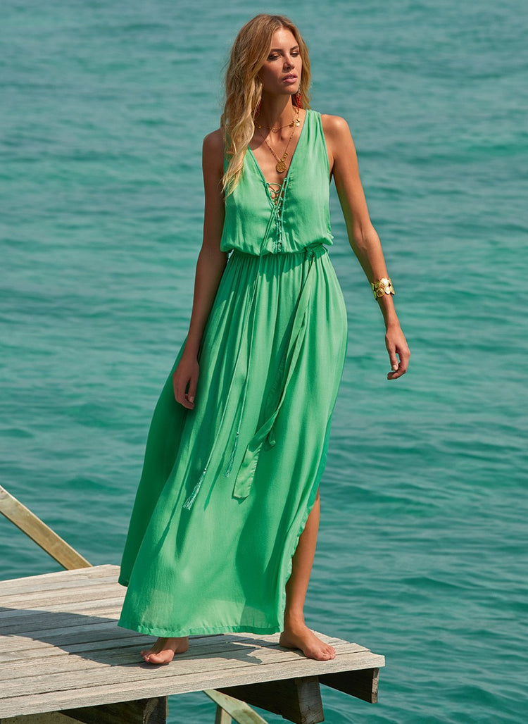 Jacquie Green Lace-Up Belted Maxi Dress $79.00 $198.00