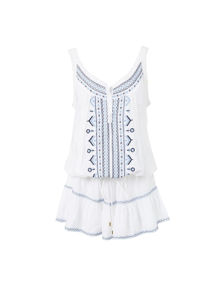 • Jaz White/Blue Embroidered Over The Shoulder Short Beach Dress $88.00 $220.00