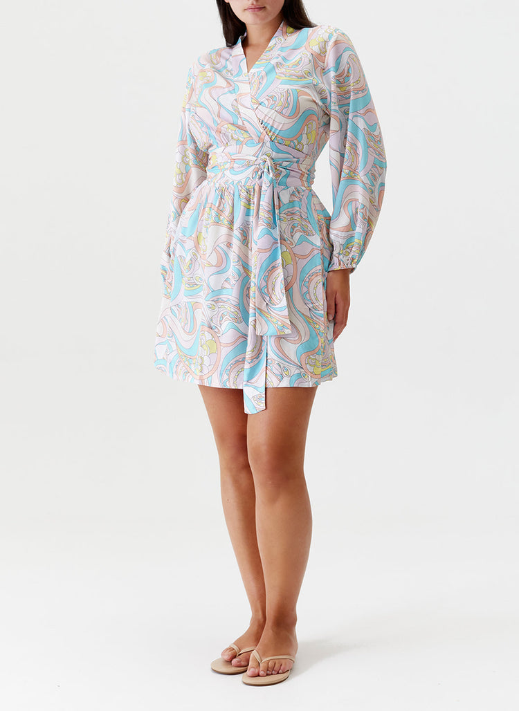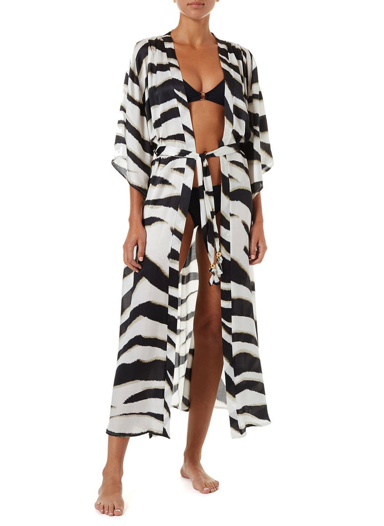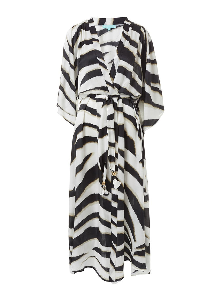 Jules Zebra Long Sleeve Belted Maxi Kaftan - FINAL SALE