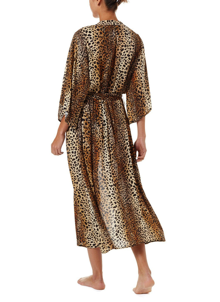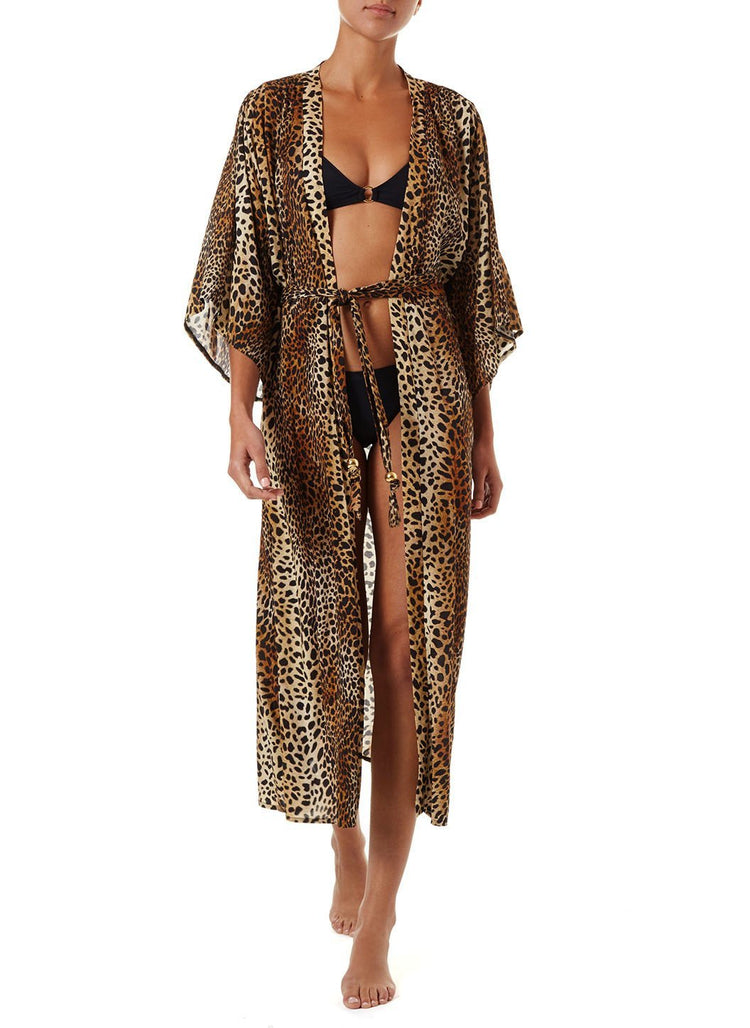 Jules Cheetah Long Sleeve Belted Maxi Kaftan - FINAL SALE