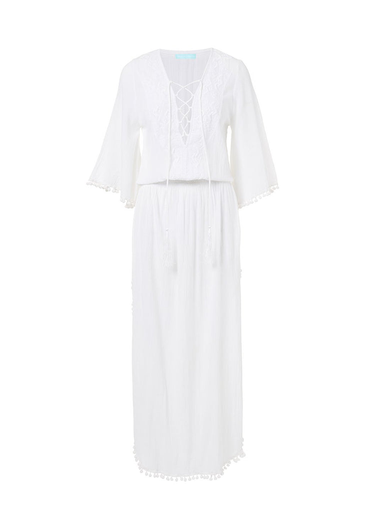 Kari White Lace-Up Embroidered Long Dress $88.00 $220.00