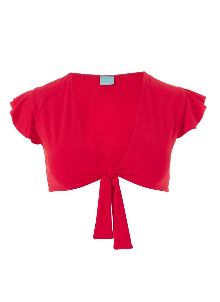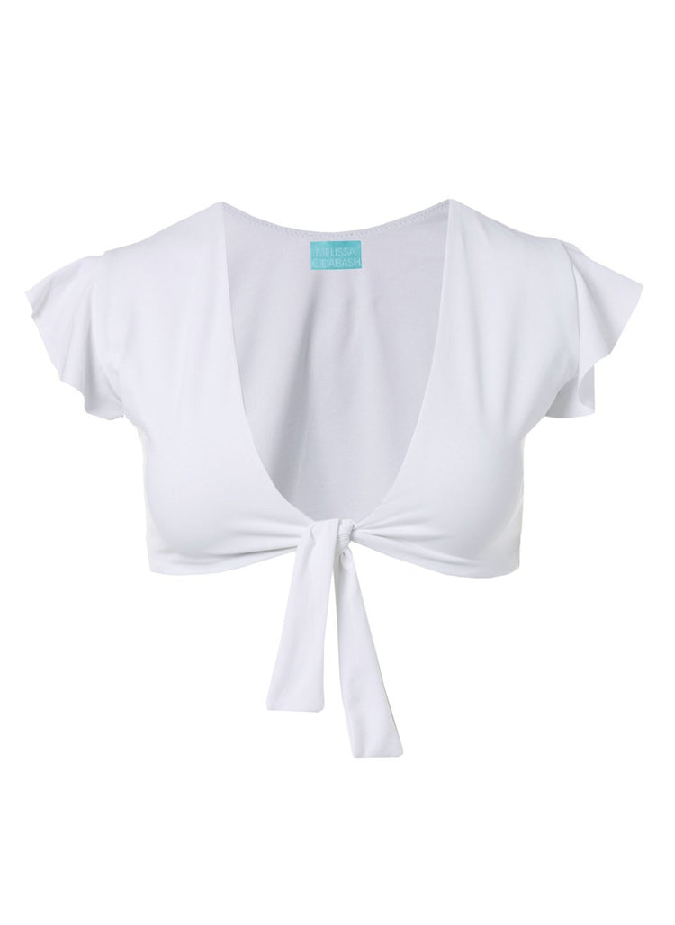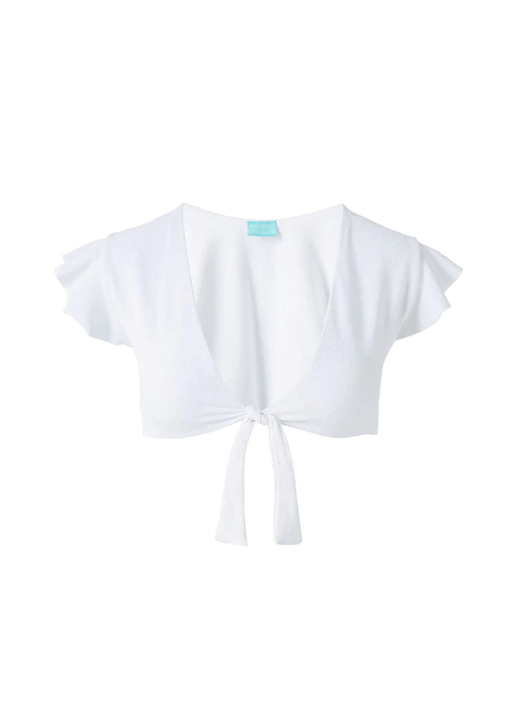 • Kohsamui White Tie Front Frill Crop Bikini Top