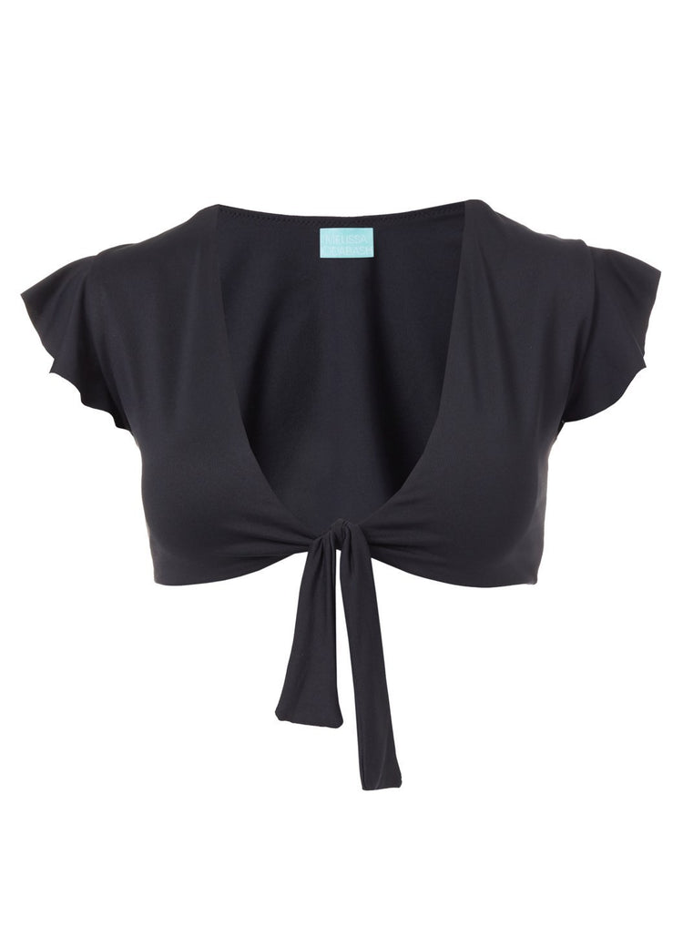 Koh Samui Black Tie Front Frill Crop Bikini - FINAL SALE