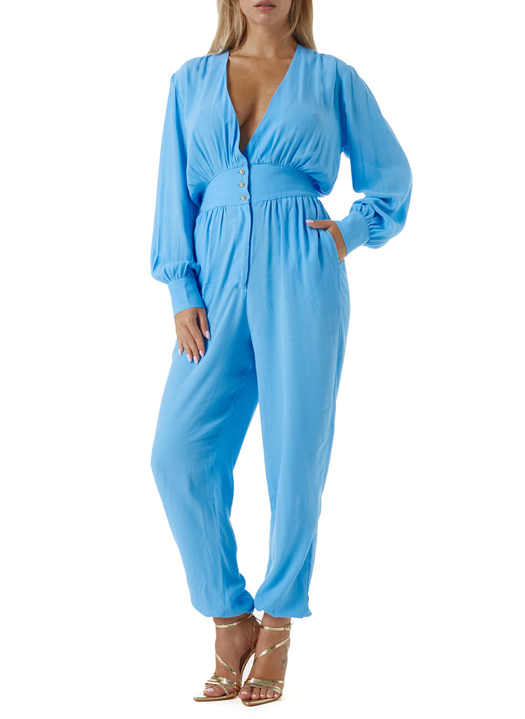 Ayana Blue Crepe Jumpsuit $123.00 $410.00