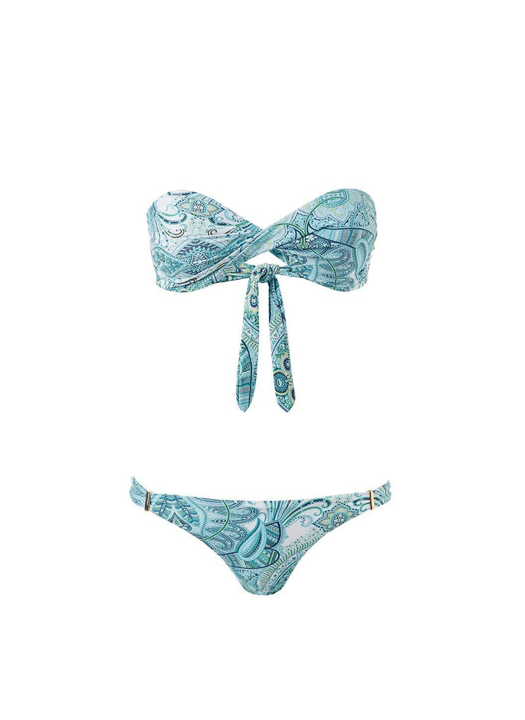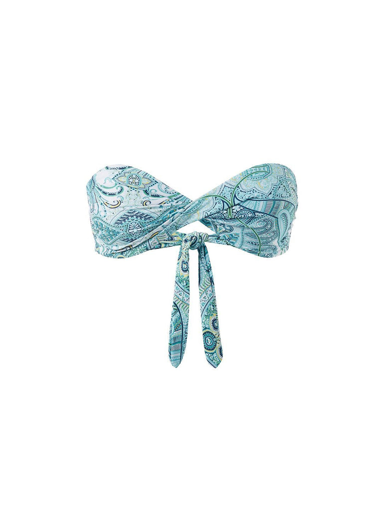 • Martinique Blue Leaf Bandeau Padded Twist Bikini Top