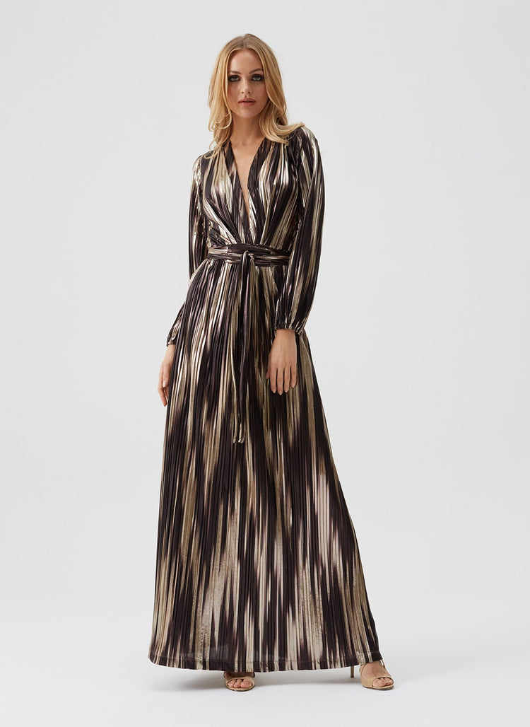 Maya Caramel Stripe Blouson Sleeve Maxi Dress - FINAL SALE $270.00 $674.00