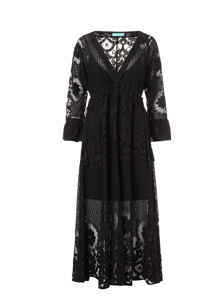 • Melissa Black Lace Tie Side Midi Dress