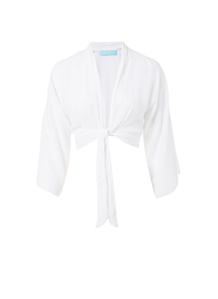 • Mila White Tie-Front Cropped Blouse $40.00 $100.00
