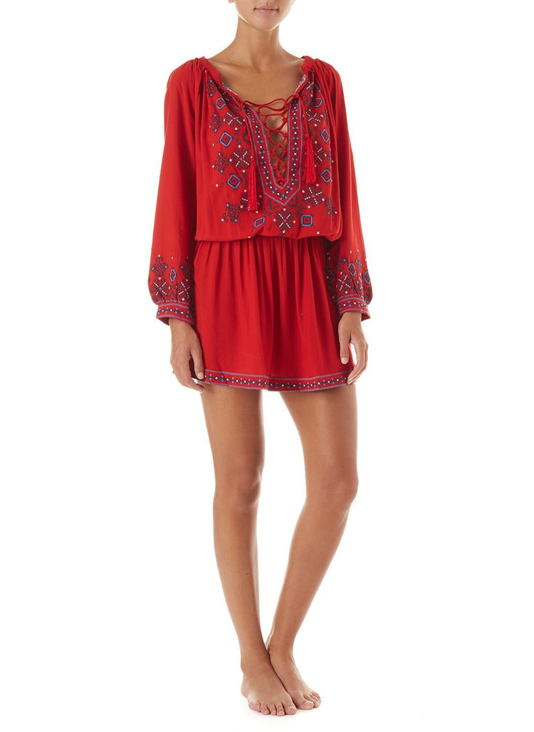 Nadja Red Embroidered Short Dress $102.00 $256.00