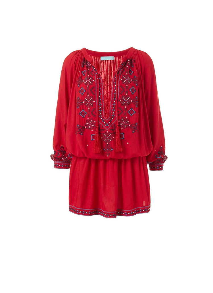 • Nadja Red Embroidered Short Dress $102.00 $256.00