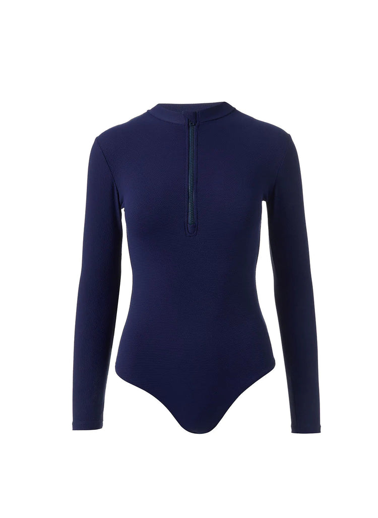 Ocean Navy Pique Long Sleeve Swimsuit $177.60 $296.00