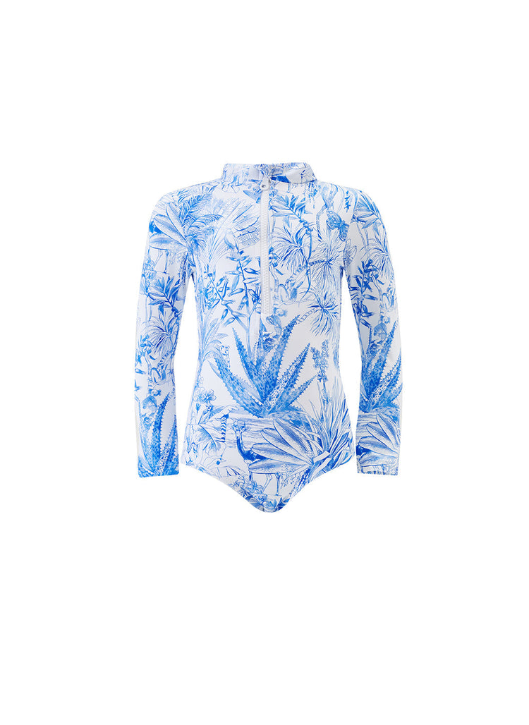 Discover Melissa’s 2026 girls swimwear collection, a curation of which boasts an all-encompassing range for your stylish little ones. The designer girls swimwear has been thoughtfully created to ensure comfort and practicality without compromising on style. This new collections offers a selection of bikinis and onepieces with sweet frill detailing or cute floral prints, the long-sleeve Girls Ella boasts a functional zip fastening and high neck, ensuring the rash vest has full coverage, ideal for protecting delicate skin from the sun, or choose the sweet and sassy Girls Noemi frilled bikini top and matching bottoms in blue tropical. Hero pieces at the top of your little one’s wishlist will be the Girls Dakota and Girls Jean in must-have flamingo or blue floral print. Shop the 2026 beachwear collection for girls available in ages 2 – 12 years.