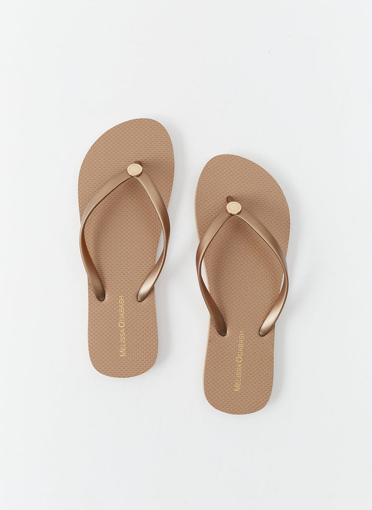 Combining style and comfort, you can now be dressed in head-to-toe Odabash style with our expanded upon range of elegant footwear. This season we are reintroducing three shapes to the collection, an on-trend woven leather slider and designer classic espadrilles in addition to the best-selling premium flip flops. Melissa Odabash designed these sandals with a simplistic aesthetic so that they can be paired with any of her latest co-ords, dresses, kaftans or skirts that feature in the new 2026 collection. The ultimate vacation sandal, thoughtfully created in neutral shades and metallic options. Add a signature finish to your look whether city exploring or sunset beach stroll.