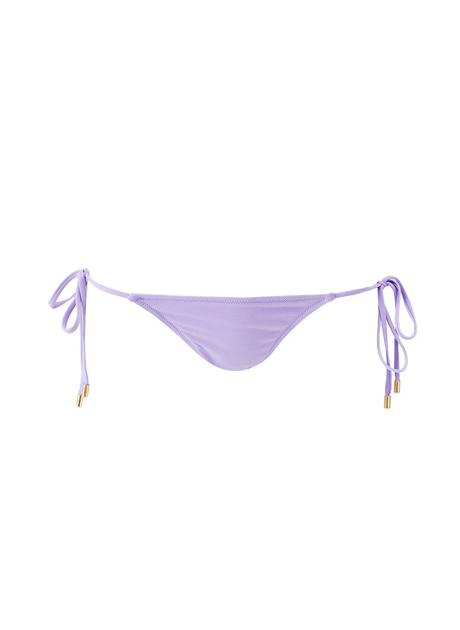Add to your swimwear rotation with the Maldives Bikini Bottom. Elevating the timeless triangle shape, this set is crafted from premium swim fabric in a soft, feminine shade of Lavender. The bikini bottom provides medium coverage, tying at the sides allowing you to adjust the fit and is finished with signature branded cord-ends. Pair with the Maldives Bikini Top and wear under the Audrey Lavender Kaftan for a beach day assemble.
